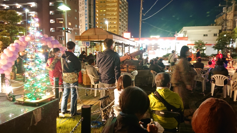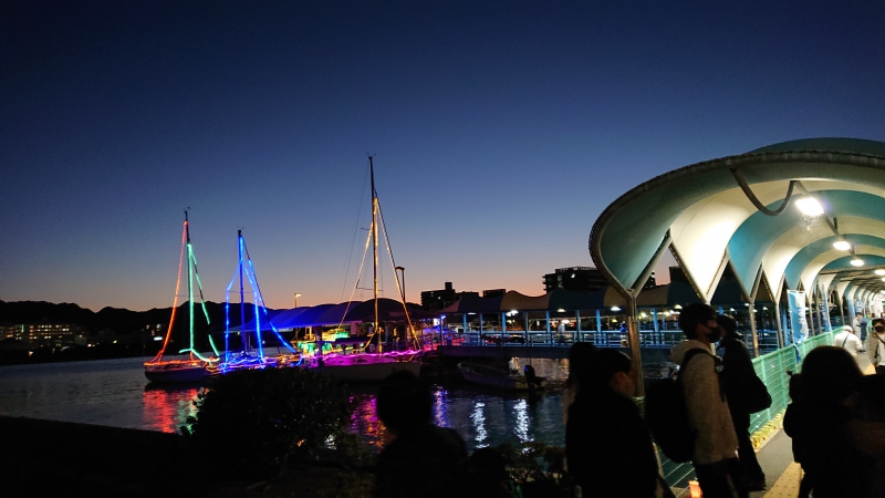 夕方からはヨットのイルミネーション、駅周辺の小学生メッセージ入りのキャンドルライトが親子連れの楽しみです。