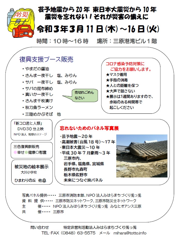 芸予地震から20年 東日本大震災から10年。震災を忘れない!それが災害の備えに!