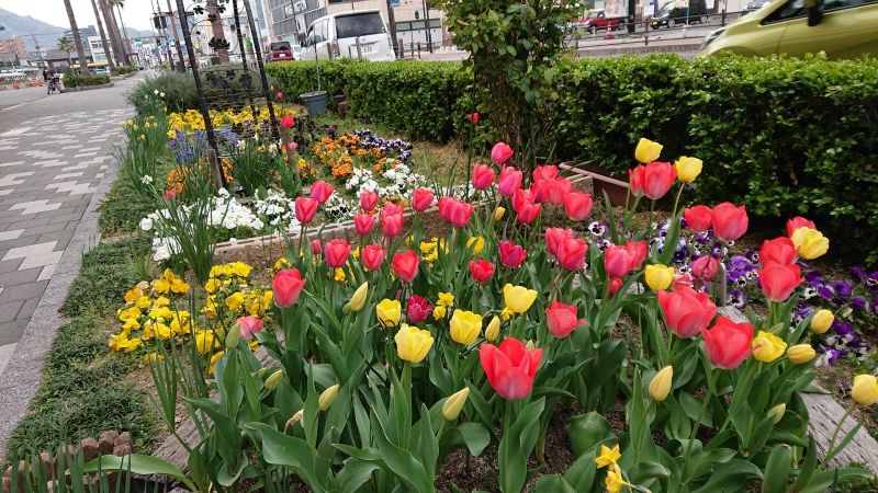 三原港も人の流れが出てきましたラビット号、シースピカへのお客様が瀬戸内の憩いを求めてお出かけです。スカイ 大きなクルーザーもお役目まで停泊中です。さつき、チューリップ、パンジーも満開です。