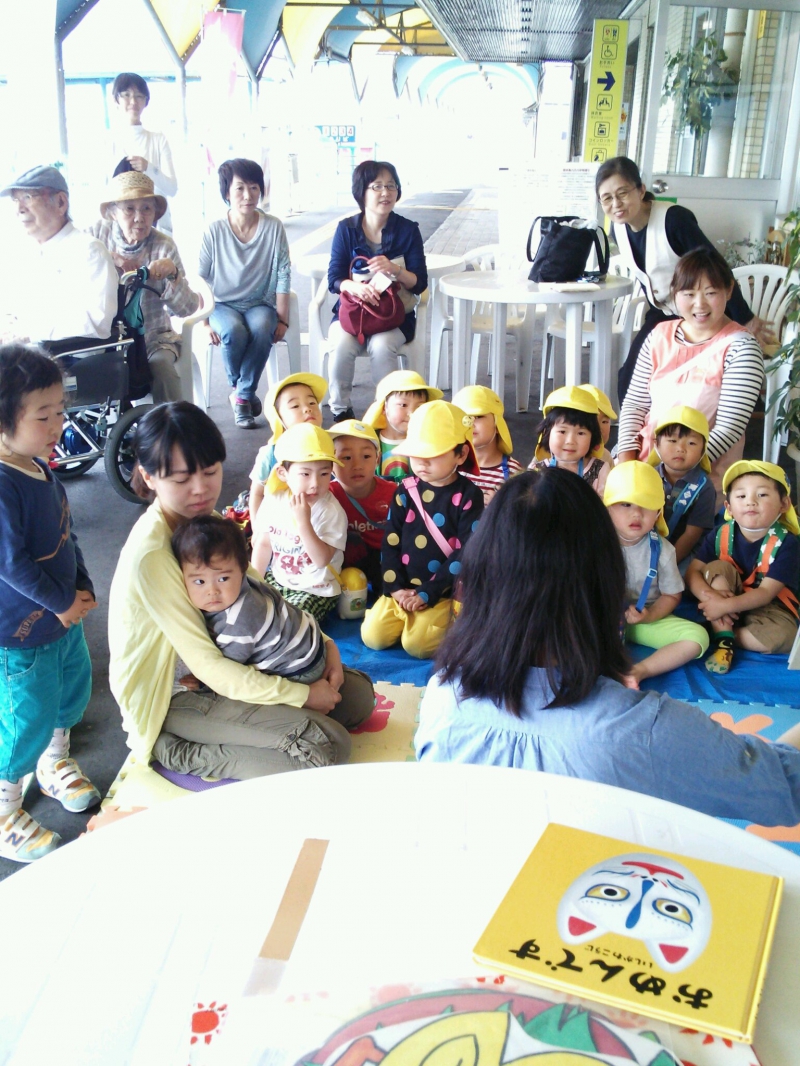 今日は月1の絵本のおばちゃんが来ました。近くの保育所からもお客様がいっぱい(*^_^*)