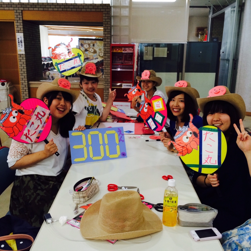 県立大学作業療法学科 兎っ兎プロジェクト6名が三原のために「たこ丸」ポップ作りに励んでます。楽しそうな姿を見てくださいそして応援をお願いします。瀬戸田では6人が頑張ります。どうぞお出かけください。公式サイト/http://mo-setoda.net/seaq-gourmet/