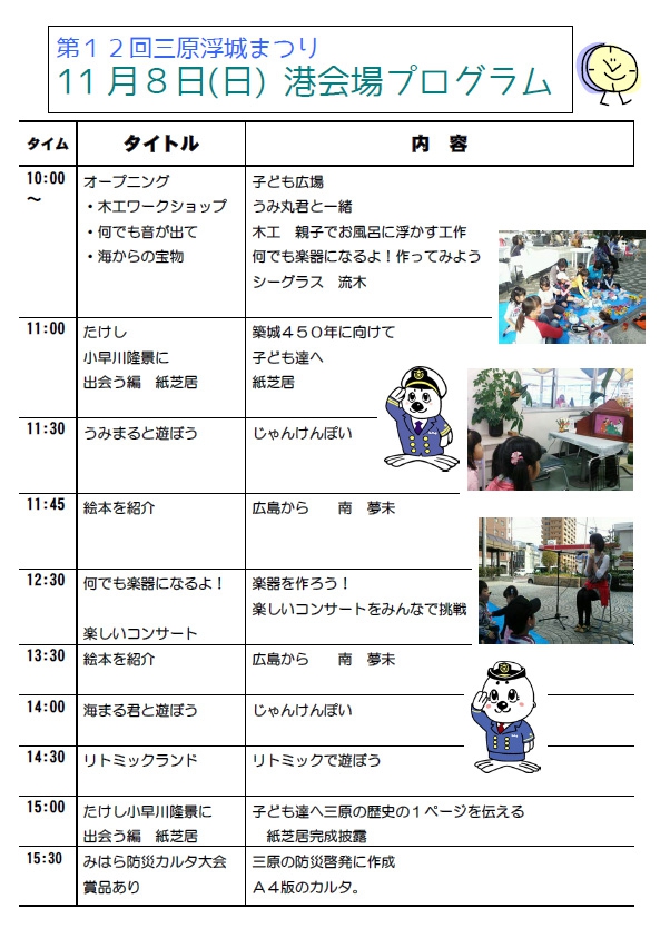 第12回浮城まつり 港会場のイベント案内です。ぜひお越しください。
