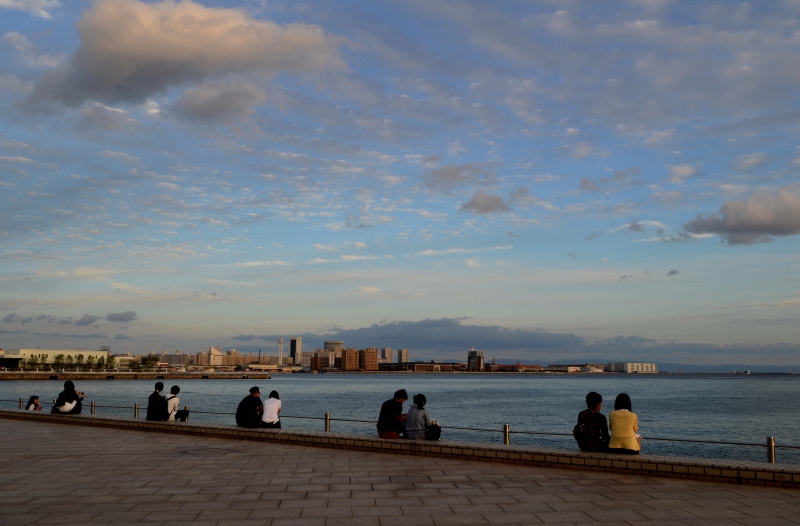 海に向き合い二人で何を語り合うのか、ほのぼのとしたさわやかな空気を感じます。