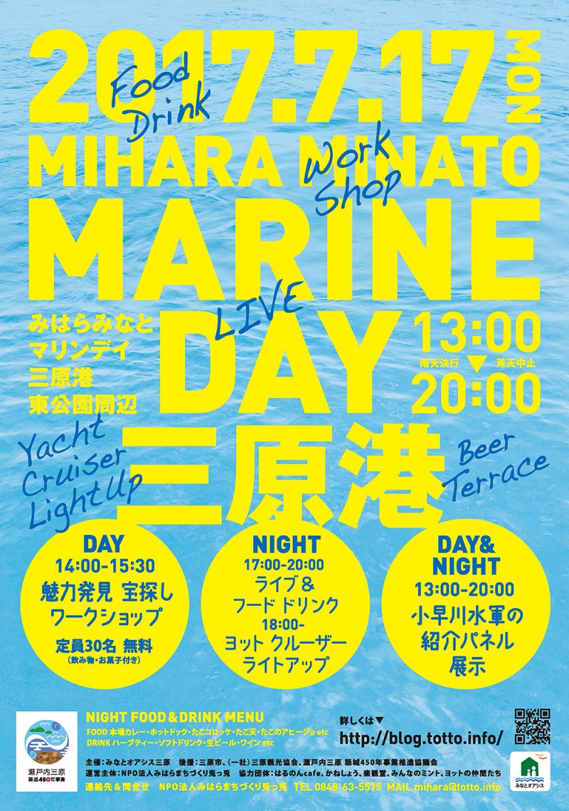 みはらみなとマリンデイ開催!2017年 7月 17日 13:00 ~ 20:00三原港・東公園周辺にて